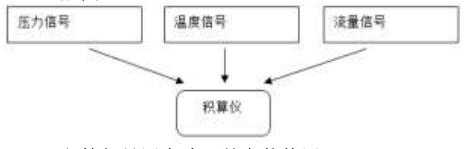 積算儀作為貿易結算的計量儀表,其*終的累計值是否合格,是關系到供熱雙方之間經濟利益是否合理的重要依據。先來看一下流量積算儀的工作原理:它是通過與之配套的流量變送器、流量傳感器和其他變送器輸出電信號的采集,用一定的數學模型計算出瞬時流量、累計流量等,并進行顯示和儲存。與之配套的傳感器,通常有標準節流裝置、渦街、渦輪、電磁、超聲波流量傳感器或變送器等,以及補償用的壓力變送器、差壓變送器、溫度變送器等等。通俗來講,影響積算儀累計數據的因素是壓力、溫度和流量。下面就其中一種工作方式來具體討論。