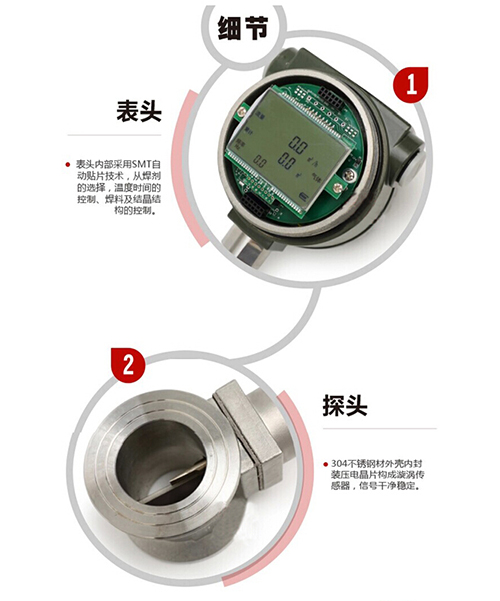 5、表體中同時(shí)集成溫壓補(bǔ)償補(bǔ)償功能,可測(cè)量流體的標(biāo)準(zhǔn)體積流量或標(biāo)準(zhǔn)質(zhì)量流量。