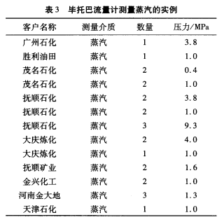 參照其他企業(yè)畢托巴流量計(jì)測(cè)量低壓蒸汽的成功經(jīng)驗(yàn),如表3所示,確定該低壓蒸汽計(jì)量采用的流量計(jì)為遼寧畢托巴科技有限公司生產(chǎn)的畢托巴蒸汽流量計(jì)。