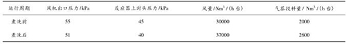 壓縮空氣計量表煮洗吹掃后,裝置運行期間無燃爆事故,且裝置運行的風量明顯提高,系統阻力明顯降低,投料量增加。現將煮洗前后的運行數據對比如下: