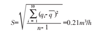選用渦街流量計在DN50管線上重復10次,測量結果分別為:184.23、184.05、183.96、183.87、182.78、183.78、183.60、183.69、183.60、183.05(單位Nm³/h),計算得到: