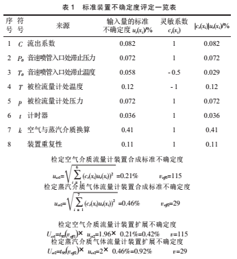 蒸汽流量計用氣體流量標準裝置不確定度評定