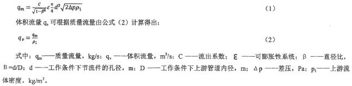 差壓式流量計是一種應用廣泛,用量好多的傳統流量計。差壓式流量計(孔板)的工作原理如下:孔板安裝在充滿流體的管線中,孔板的存在使孔板上游側與下游側之間產生一個靜壓差,流量越大,差壓越大,因此可以利用差壓變送器檢測差壓的大小來衡量流量的大小。這種測量方法是以流動連續性方程(質量守恒定律)和伯努利方程(能量守恒定律)為基礎的。差壓的大小不僅與流量還與其他許多因素有關,如節流裝置形式,管道內流體的物理性質(密度,粘度)及流動狀況等。質量流量qm可根據公式(1)確定: