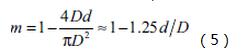 由于m為旋渦發生體兩側弓形面積與管道橫截面面積之比,按照渦街流量的通用設計,對三角柱形發生體,在d/D=0.28時漩渦發生的頻率信號*強,取d/D=0.28,根據m的計算式(4)得
