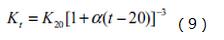 將式(8)帶入式(7)中得到由于溫度變化而引起的儀表系數的變化為