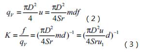 渦街流量計所測量的是旋渦發生體兩側的平均速度u1,而反映被測流量的是管道中的平均流速u,它們之間的關系式為: