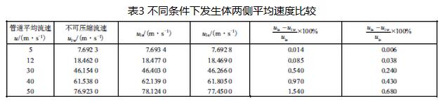 表3的后2列分別表示了空氣、蒸汽由于可壓縮性而引入的計量偏差,由計算數據可以得出,相同管道平均流速u的條件下,可壓縮介質發生體兩側的流速均比不可壓縮流體的流速u1大,并且隨u的增大,引起的差值增大,u1的相對偏差也越來越大,在流速為50m/s時空氣由于可壓縮性可引起1.54%的偏差,蒸汽由于可壓縮性可引起0.68%的偏差,因此在渦街流量計的使用中需要考慮可壓縮介質引起的影響。