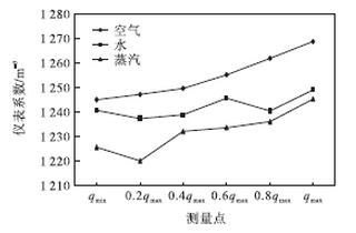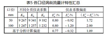 (3)不同介質的可壓縮性會對渦街流量計儀表系數產生影響,空氣介質下儀表系數*大,水次之,蒸汽*小,在同樣的流速下蒸汽介質對儀表系數的影響要小于空氣的影響,具體差別大小根據工況條件下分析計算可得到。