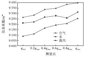 實驗條件下空氣、蒸汽、水為測試流體介質時,各測試條件參數如表2所示。