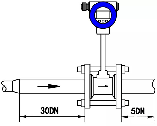 2、調節閥盡可能不安裝在渦街流量儀表的上游,而應安裝在壓縮空氣流量計的下游10D處。