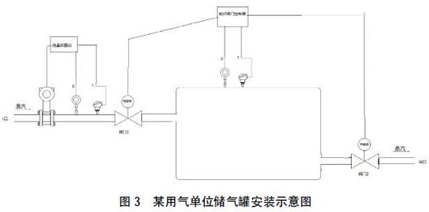 上圖這個系統中,閥門控制器根據罐內壓力來自動控制閥門一,閥門二的開閉。這兩個閥門為電磁閥,開閉的執行時間非常短暫。當儲氣罐為空,即壓力接近常壓時,閥門一打開,蒸汽由入口放入進入充氣階段,流量計開始計量,儲氣罐內壓力上升到某點后,儲氣罐充滿,閥門一關閉,蒸汽渦街流量計停止計量,閥門二打開,蒸汽由閥門二出口處排出到生產部門,儲氣罐排空后作如上循環工作。