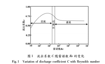 流出系數主要受孔板結構即孔徑比β和雷諾數影響。對于特定流量計β基本不變。孔板流量計流出系數與雷諾數的關系如圖1所示。