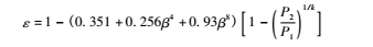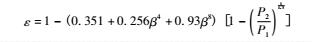 膨脹系數是對流出系數在可壓縮性流體中密度變化的修正。對于孔板流量計,由于流量計膨脹既是軸向的又是徑向的,目前主要按照經驗公式計算。按照ISO5167,孔板的三種取壓方式采用同一可膨脹性系數公式,適用于空氣、蒸汽及天然氣等介質,如下式所示。