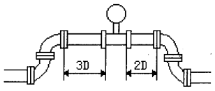 渦街流量表由于其獨特的性能,一直受到人們重視,并己到了廣泛的應用,但仍有兩個方面的問題困擾著人們,一是由于儀表上游管道阻流件的干擾,流場發生畸變,影響旋渦正常撥離。為了克服流場擾動,儀表前需要配裝較長直管道(一般為15~40倍的工藝管內徑的長度),而在實際現場是很難滿足的。二是,渦街流量表主要特點之一是量程寬,一般在10:1左右,應該說這樣寬的測量范圍應屬比較優良的性能,但在實際工業應用中,*大流量遠低于儀表的上限值,*小流量又往往會低于儀表的下限值,一些儀表經常工作在下限流量附近,造成儀表的計量準確度下降,這時信號較弱,儀表的抗干擾能力也下降。為了測量小流量,人們往往采用內腔形狀為園臺的傳統變徑管,經過縮徑提高測量處的流速。使渦街流量表工作在正常流速范圍內,但這種變徑方式,結構尺寸大(一般長度為工藝管內徑的3~5倍),同時,由于流體流經變徑管,在變徑處產生大量旋轉流團,增大局部阻力損失,也使流場發生畸變。所以必須在變徑管與儀表之間加裝大于15倍工藝管內徑長度的直管道進行整流,且增加了沿程阻力損失(如圖1所示),這種方法增加施工成本,也給加工、安裝帶來不便。