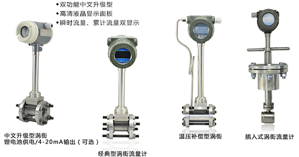 2、溫度補償一體型渦街流量計還帶有溫度傳感器,可以直接測量出飽和蒸汽的溫度并計算出壓力,從而顯示飽和蒸汽的質量流量。