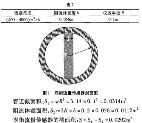 當流量為400m³/h時,此時氣體通過渦街流量傳感器的流速v: