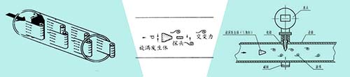 (3)有縮頸、擴頸和彎管時,應(yīng)配置合理的上、下游直管段,如果管道中有一個彎管接頭,那么流量計和旋渦發(fā)生體與彎管接頭應(yīng)在同一平面。